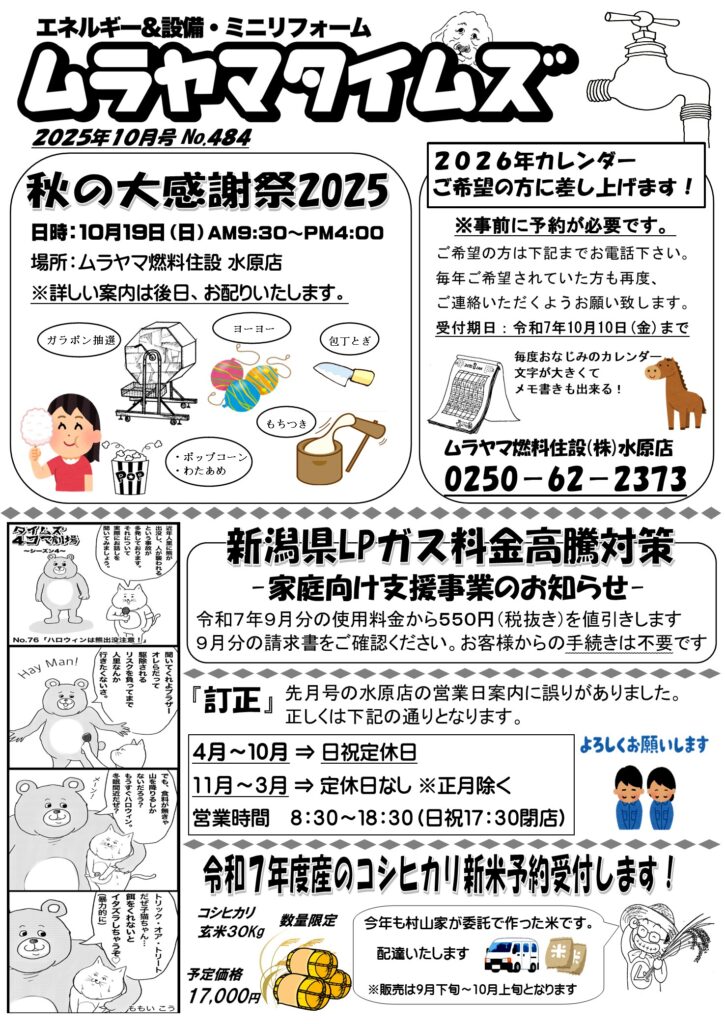 ムラヤマタイムズ2025年10月号 2025年10月2日 最終更新日時 : 2025年10月2日 ムラヤマ燃料住設 株式会社 投稿者プロフィール ムラヤマ燃料住設 株式会社 最新の投稿 今月のチラシ2025年10月2日チラシ2025年10月 ムラヤマタイムズ2025年10月2日ムラヤマタイムズ2025年10月号 ムラヤマタイムズ2025年10月2日ムラヤマタイムズ2025年9月号 今月のチラシ2025年10月2日チラシ2025年9月